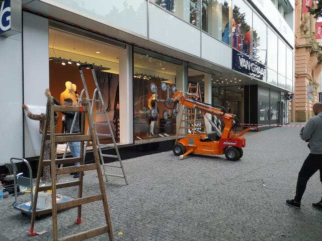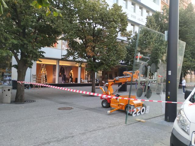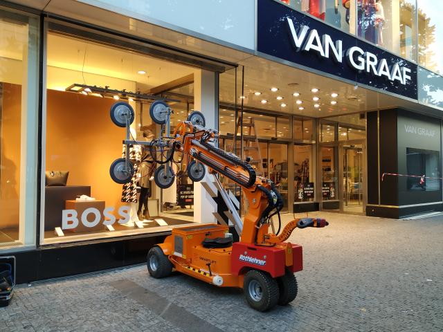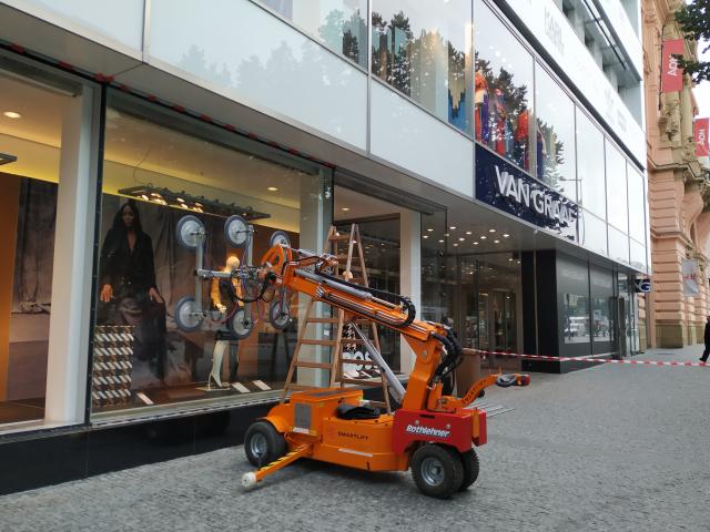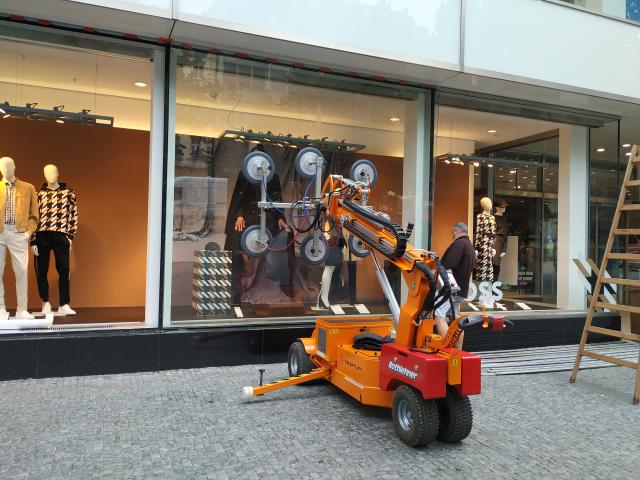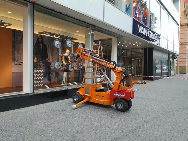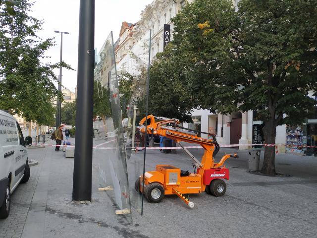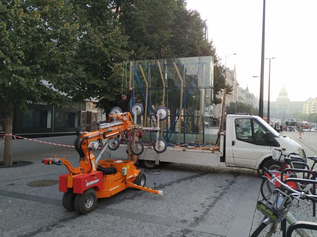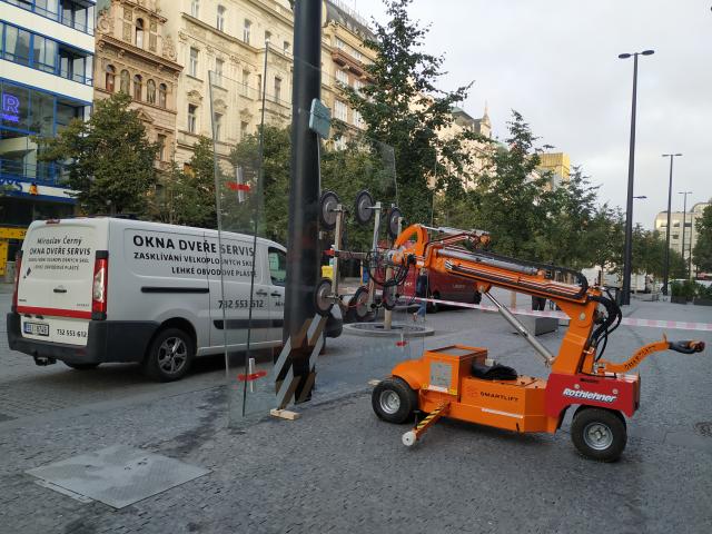 Realizace zasklení na Václavském náměstí s vakuovým samohybným manipulátorem SL1008.